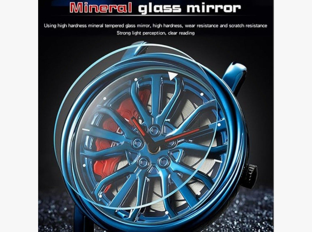 MASTOP Mens Wrist Watch Creative 3D Spinning Car Wheel Rotating Watches Rim