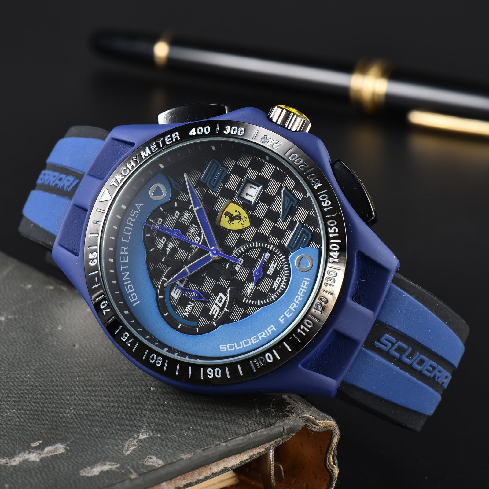 Waterproof Men's F1 Scuderia Ferrari 44mm Luxury Chronograph Red Silicone Watch